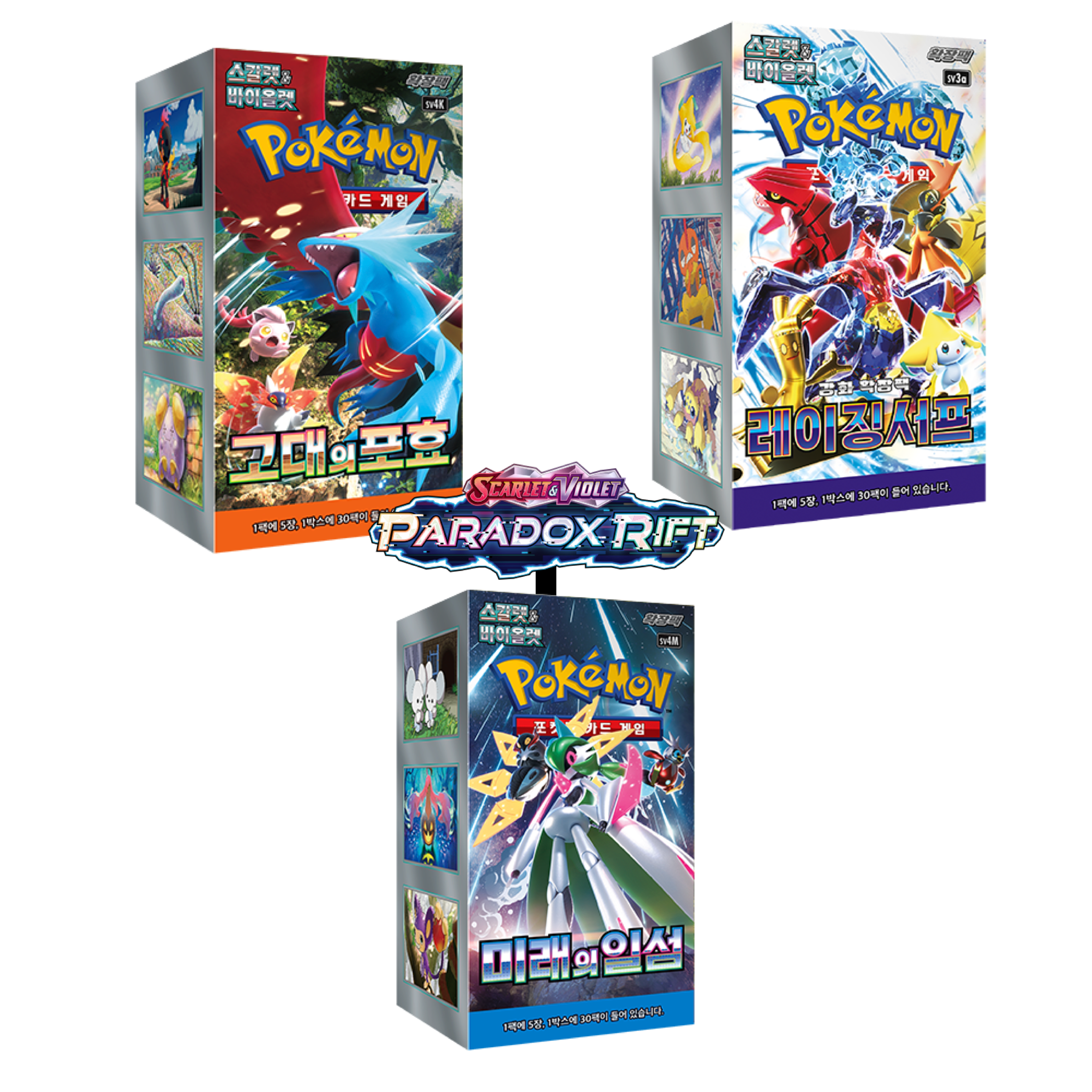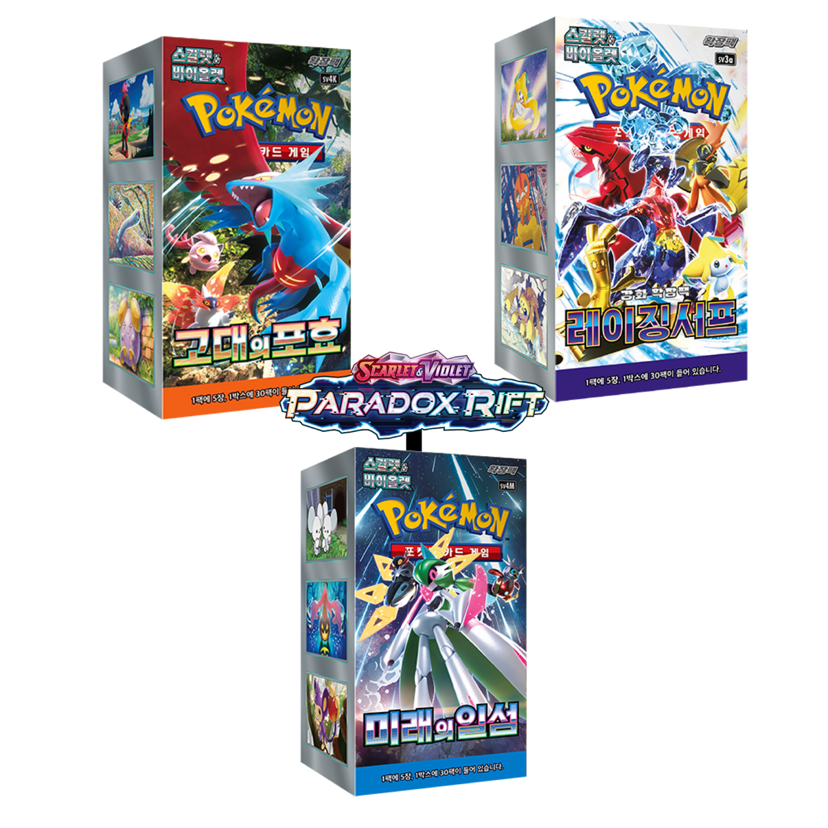 Bundle Set Contents : Ancient Roar Sv4K Booster box(korean ver) & 5 Bonus packs + Future Flash Sv4M Booster box(korean ver) & 5 Bonus packs + Raging Surf Sv3a Booster box(korean ver) & 5 Bonus packs