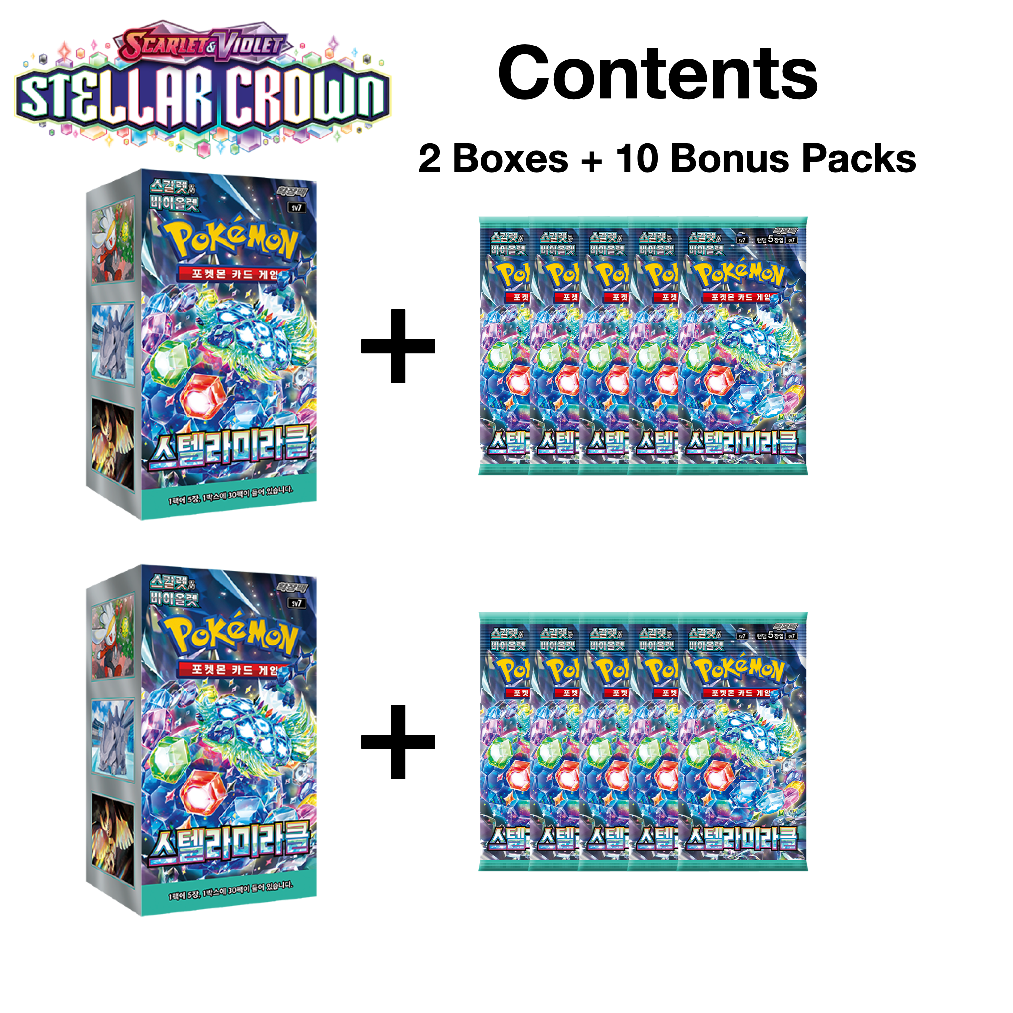 Bundle Set Contents : Stellar Miracle Sv7 Booster box(korean ver) x 2 & 10 Bonus packs